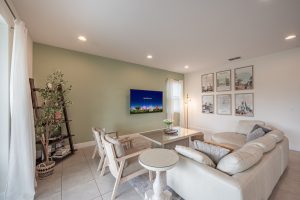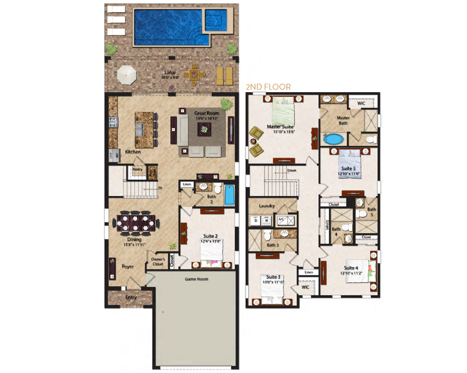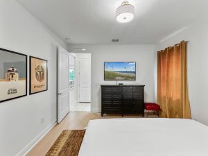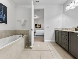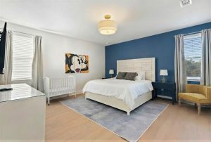 Peaceful Primary Suite with king bed, crib, workspace, walk-in closet, and a soaking tub — your private retreat upstairs.