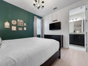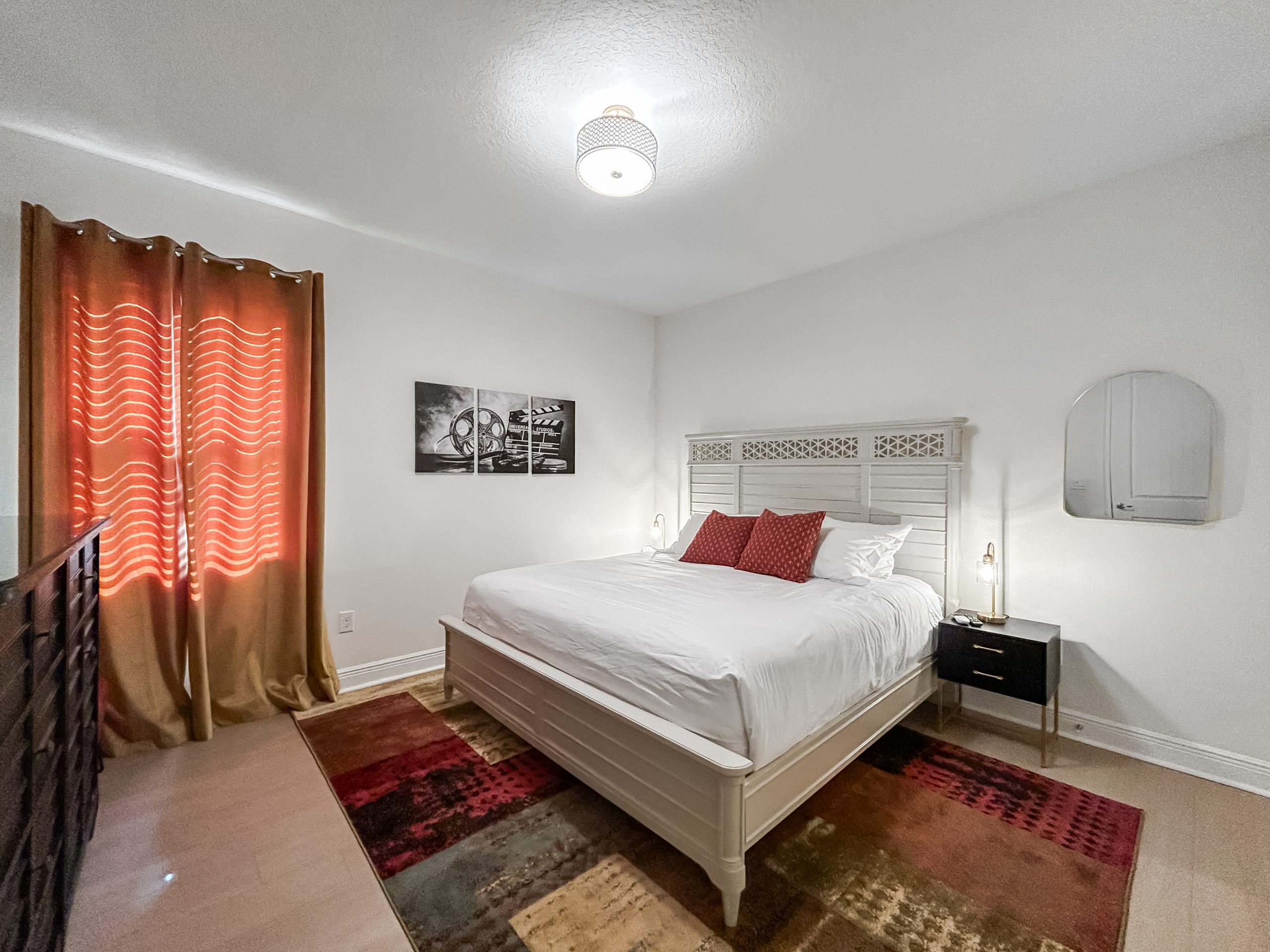 Main floor King Suite with vintage Hollywood charm — perfect for grandparents or anyone who prefers easy access.