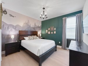 Hogwarts-inspired Queen Suite with its own bathroom — a cozy, enchanted escape for wizards of all ages.